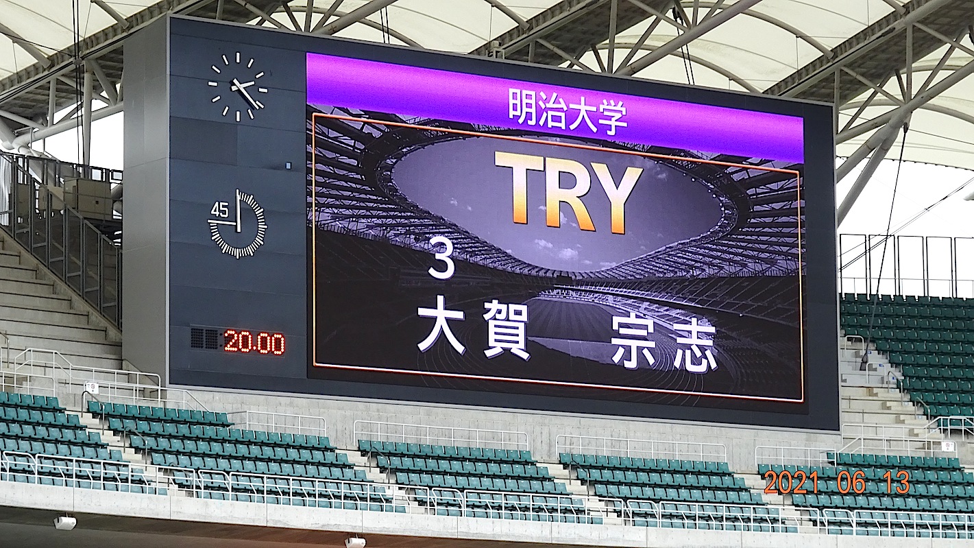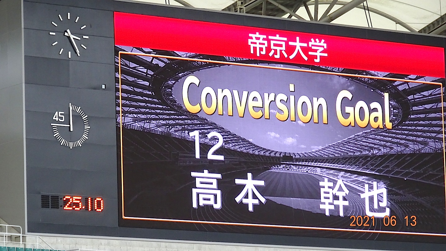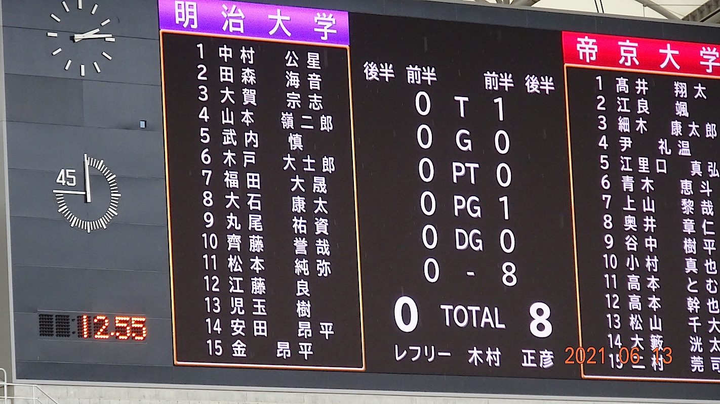前半45分は、帝京リード(18対14)で折り返し、後半一時的に明治が