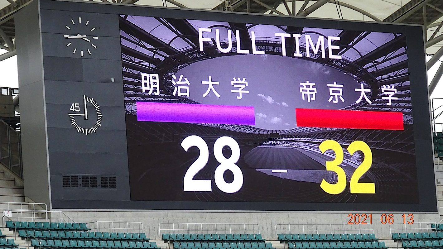 逆転したが、結局後半も明大は28対32でノーサイド、4点差のまま惜敗。