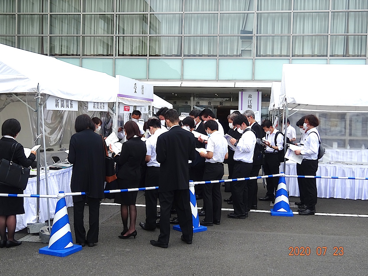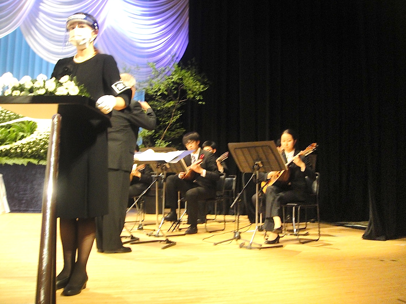 生前、マンドリンをこよなく愛した故人のために、Covid-19 新型コロナ禍騒動の最中、遠方より駆けつけた友人の明治大学マンドリンクラブの常任指揮者、甲斐康文先生に引率されて会に参列した学生5人の奏でるマンドリン演奏の中、故人を偲ぶ約2,000人余りの弔問者が各地から訪れ しめやかに 故人とのお別れを惜しみました。 会の終わりが近づいた頃、聞こえてきた明治大学校歌のマンドリン演奏に耳を傾けながら故人とのお別れを惜しんだ。