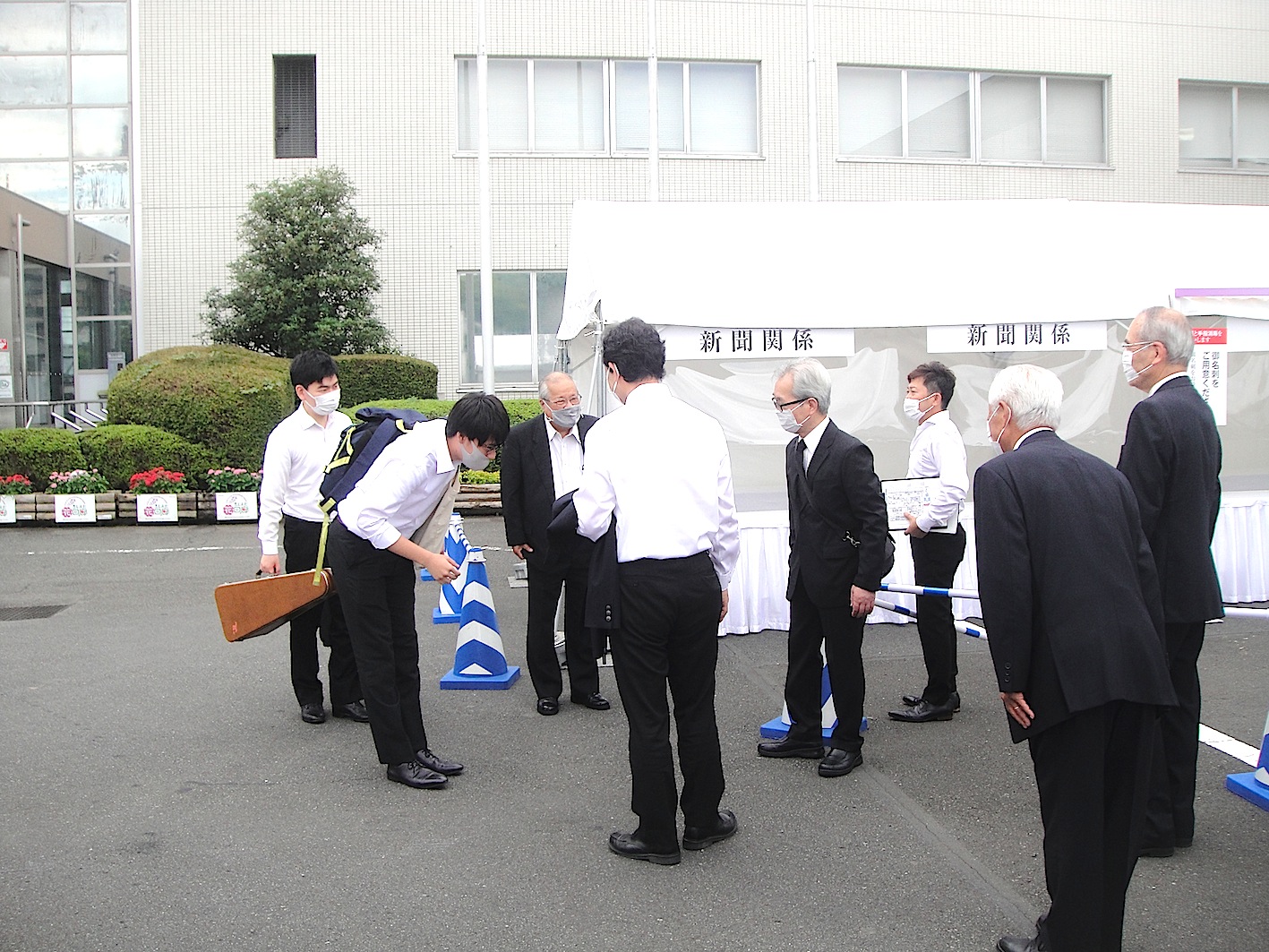 マンドリンクラブ常任指揮者 甲斐靖文氏、倶楽部学生の到着お迎え