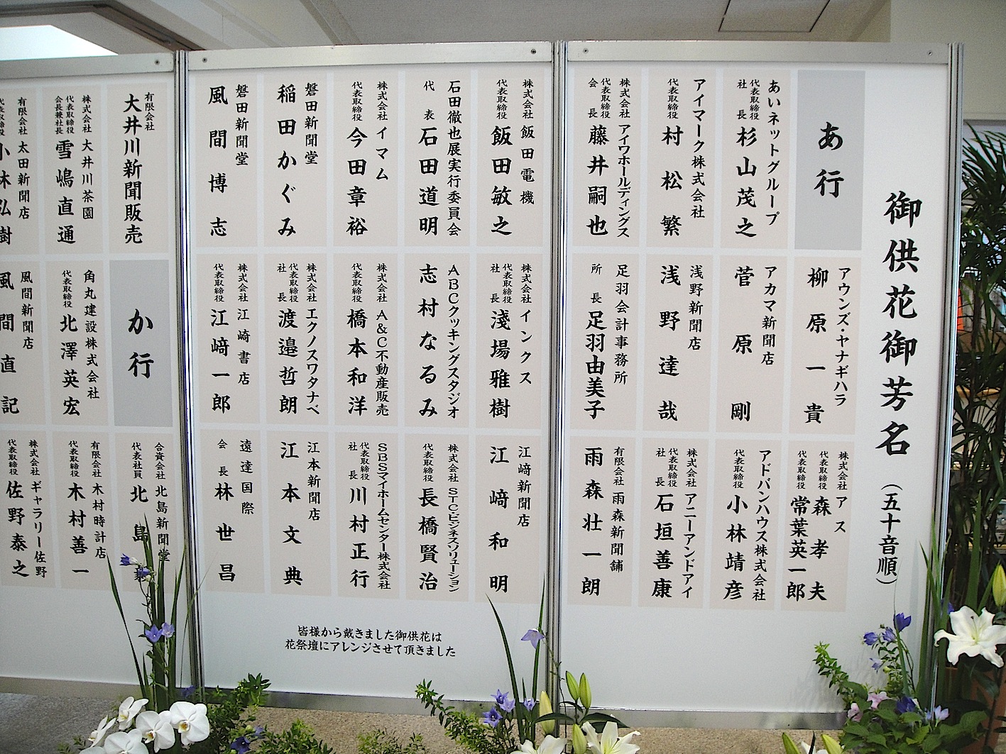 旧支部長から 御記帳どうぞ