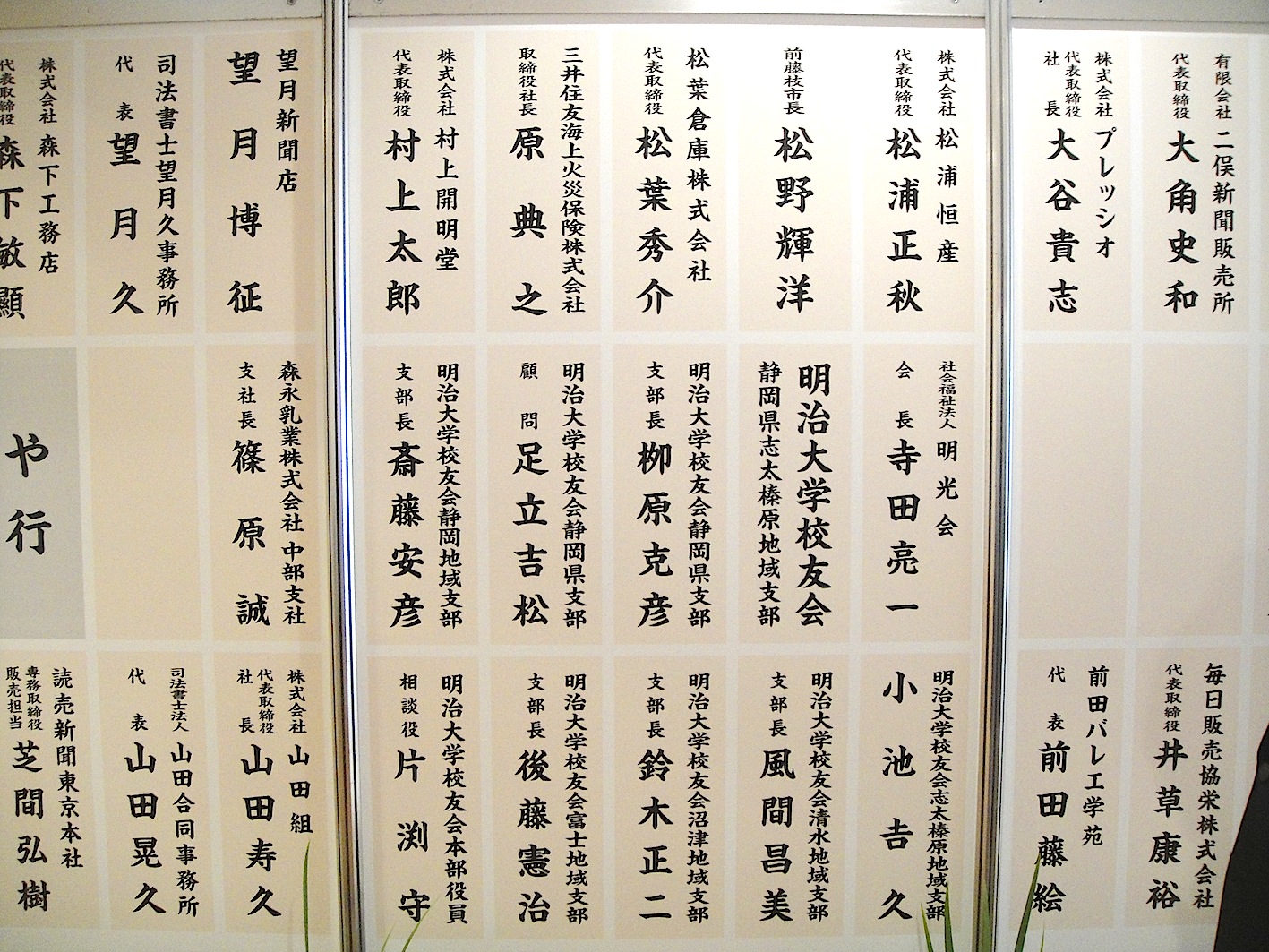 旧・新 校友会静岡県支部長、大学校友会副本部長、地域支部役員、その他